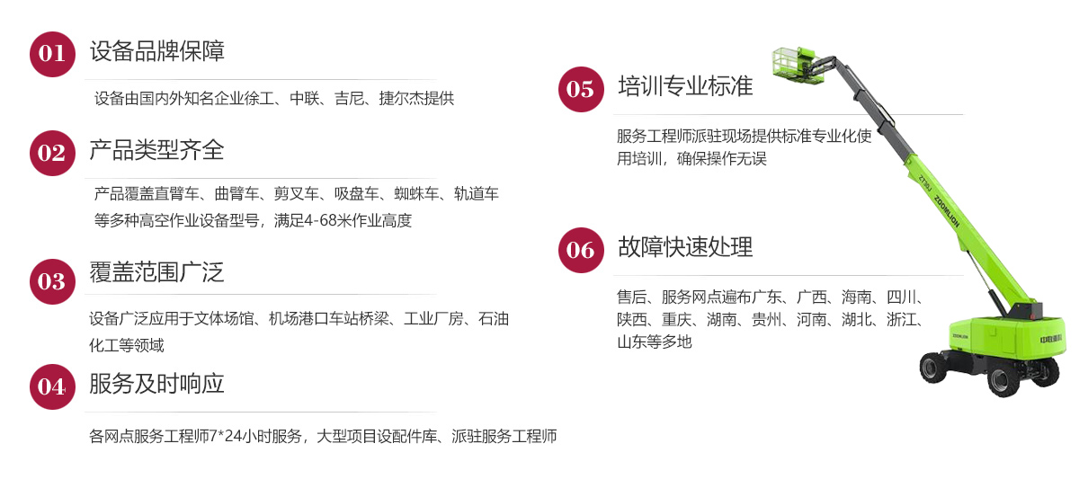 公司在發(fā)展歷程中堅定實行大客戶戰(zhàn)略,致力于以優(yōu)質(zhì)的服務打造公司的品牌和核心競爭力,現(xiàn)已在廣東、廣西、海南、四川、陜西、湖南、重慶、河南、湖北、貴州等多地建立了完善的售后服務網(wǎng)點,24小時為客戶排憂解難。今后我們將結(jié)合市場需求,不斷創(chuàng)新業(yè)務模式、優(yōu)化設備結(jié)構(gòu)、加強運營管理、擴大服務網(wǎng)點、提升服務水平,形成以設備租賃、銷售、二手設備交易等全方位一站式的全面服務體系,用高標準高質(zhì)量的服務讓客戶在和公司合作的過程中實實在在感受到省心、省力、省錢的體驗,在客戶心目中樹立“家鋒”的品牌形象。